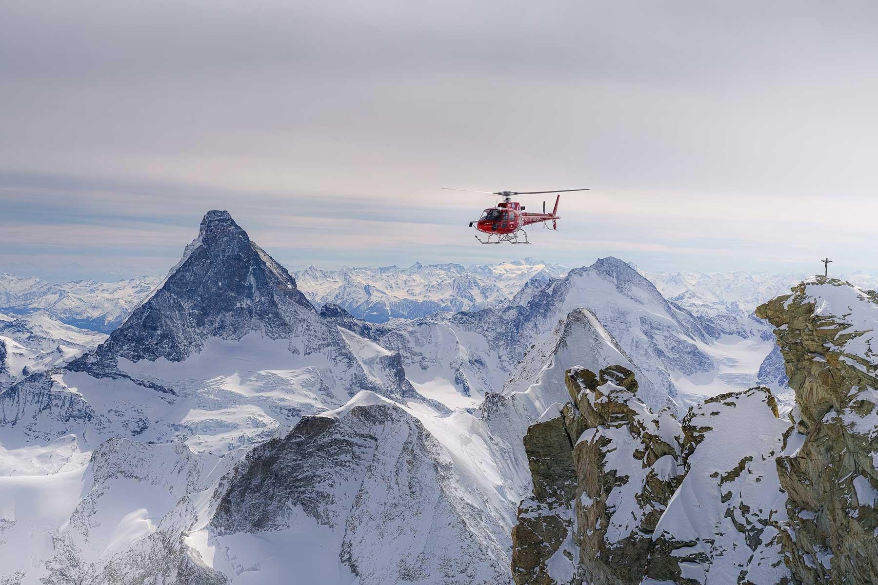 The helicopter company Air Zermatt provides transport and rescue services for the Zermatt-Matterhorn destination. It also offers all kinds of adventures for visitors – such as sightseeing flights around the Matterhorn.