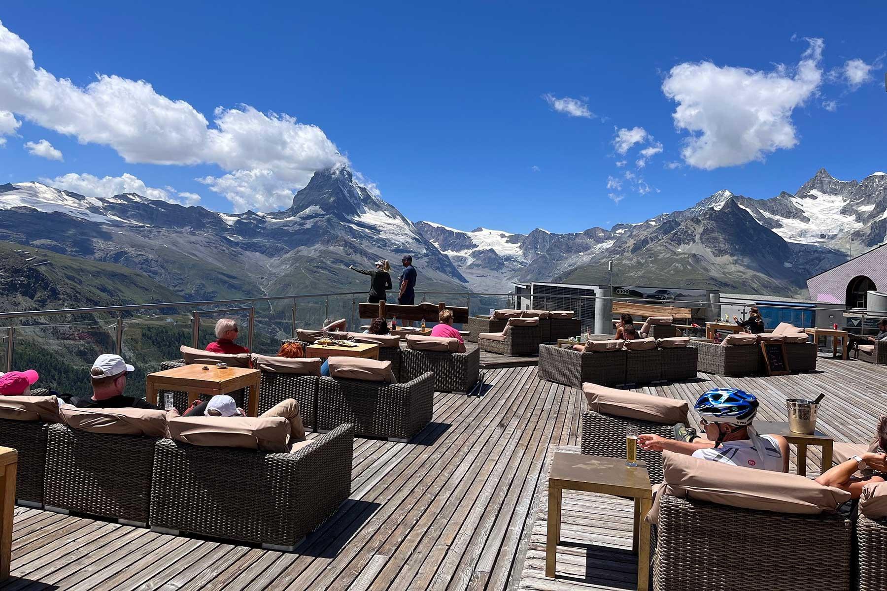 Enjoy a snack and drink on the terrace with a view of the Matterhorn. There is live music from Christmas to Easter. In bad weather, cosy seating is available inside. Thanks to its proximity to Blauherd railway station, it is ideal for non-skiers.