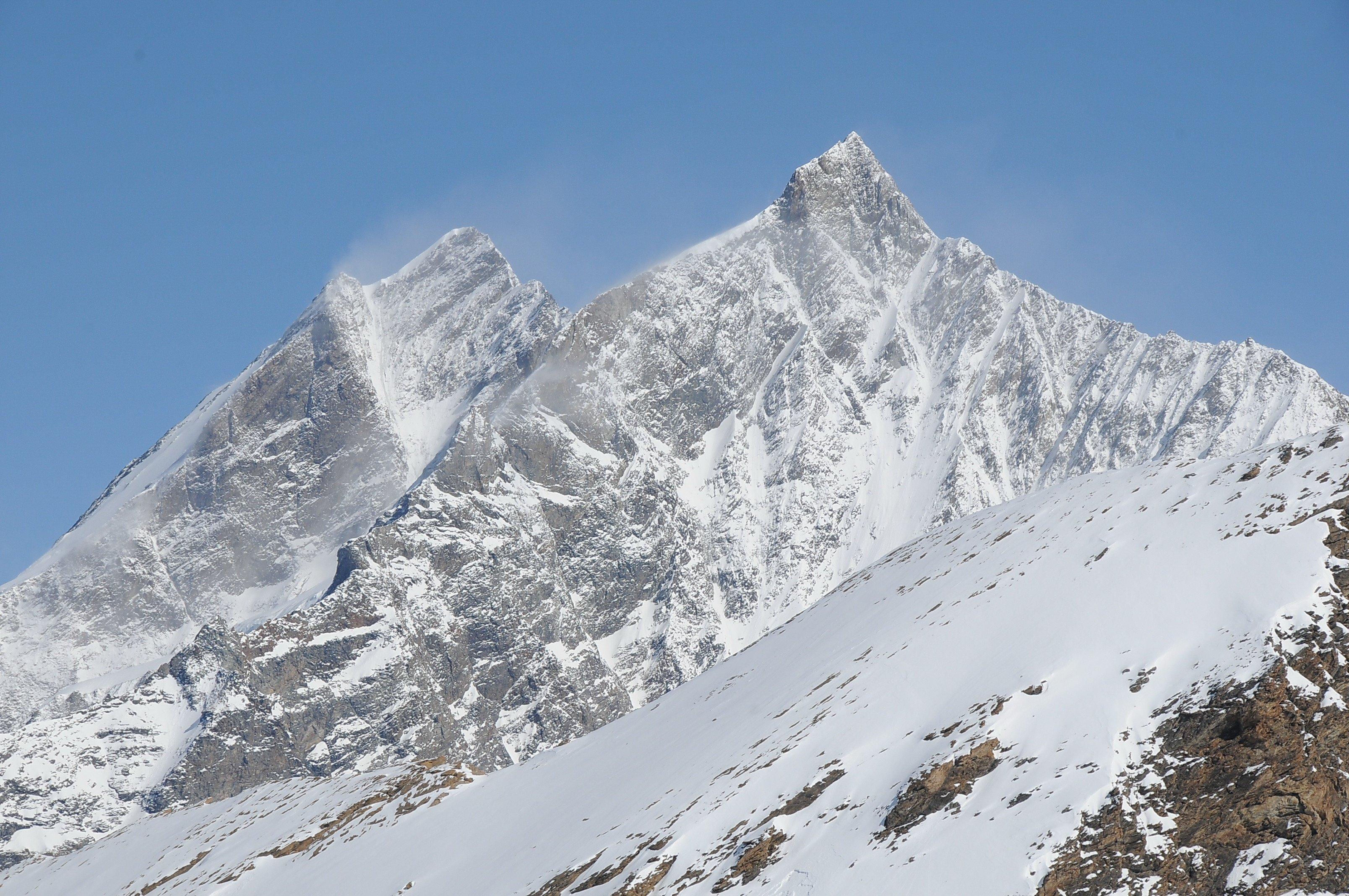 The Dom is a massive and impressive mountain in the central axis of the Mischabel group, located between the Täschhorn and the Lenzspitze. It is the highest mountain entirely on Swiss territory. After Mont Blanc and the Monte Rosa (Dufourspitze, Nordend, Zumstein and Signalkuppe), the Dom is the third-highest summit in the Alps. It can also be climbed on skis: the first such ascent was on 18 July 1917 by the British skier Sir Arnold Lunn, together with the mountain guide Joseph Knubel, the first person to climb the north-east face of the Eiger.