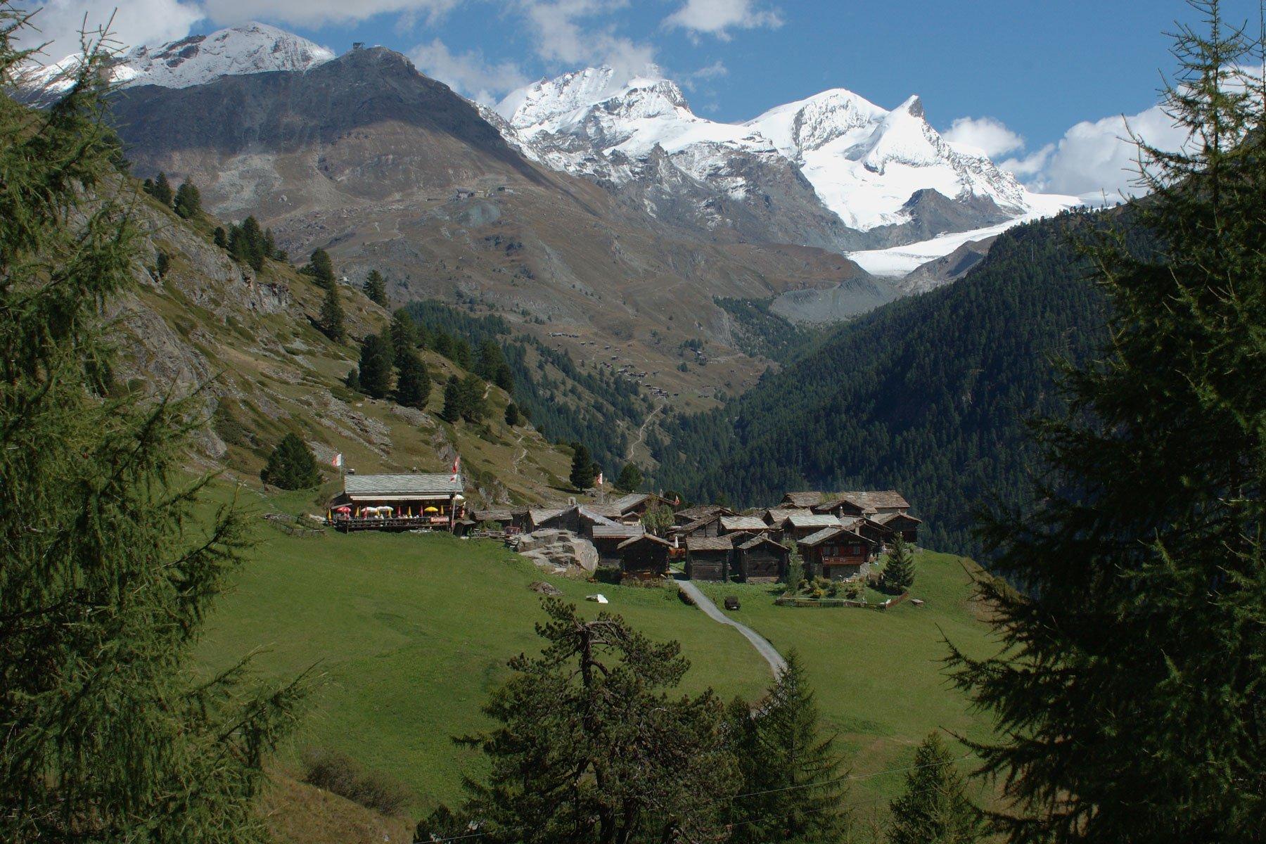 For more than 500 years, the hamlet of Zmutt has stood on a small rise at an altitude of 1,936 m, among lush alpine pastures. The traditional wooden houses, closely huddled together, tell of a long history.