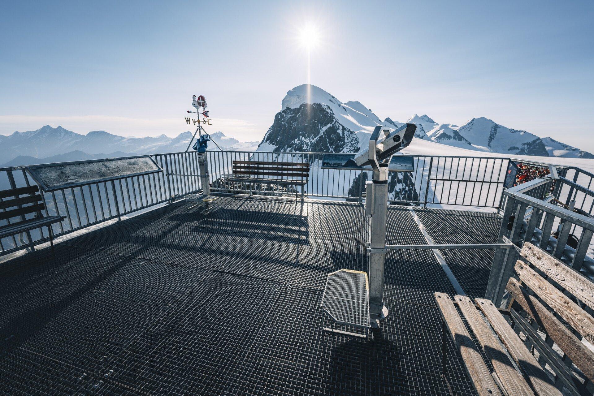The panoramic panels on the platform of the Matterhorn Glacier Paradise show the surrounding peaks such as the Eiger, Mönch, Jungfrau and Mont Blanc and convey their impressive height. Visitors enjoy a unique view and experience the Alps up close, without any mountaineering experience or equipment.