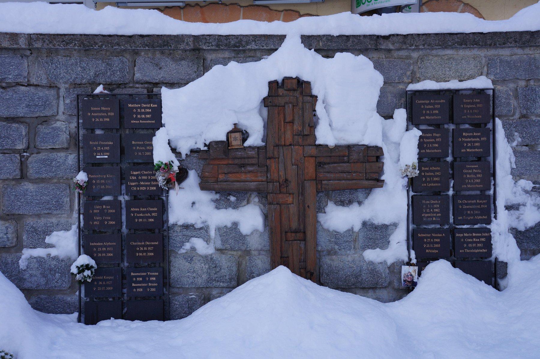 Since the start of the new millennium, the wall of the local’s cemetery has become a memorial site for climbers and snow sports enthusiasts who came to Zermatt as guests. They lost their lives in the mountains around Zermatt: while climbing or hiking, skiing or snowboarding, perhaps victims of an avalanche or a fall into a crevasse.