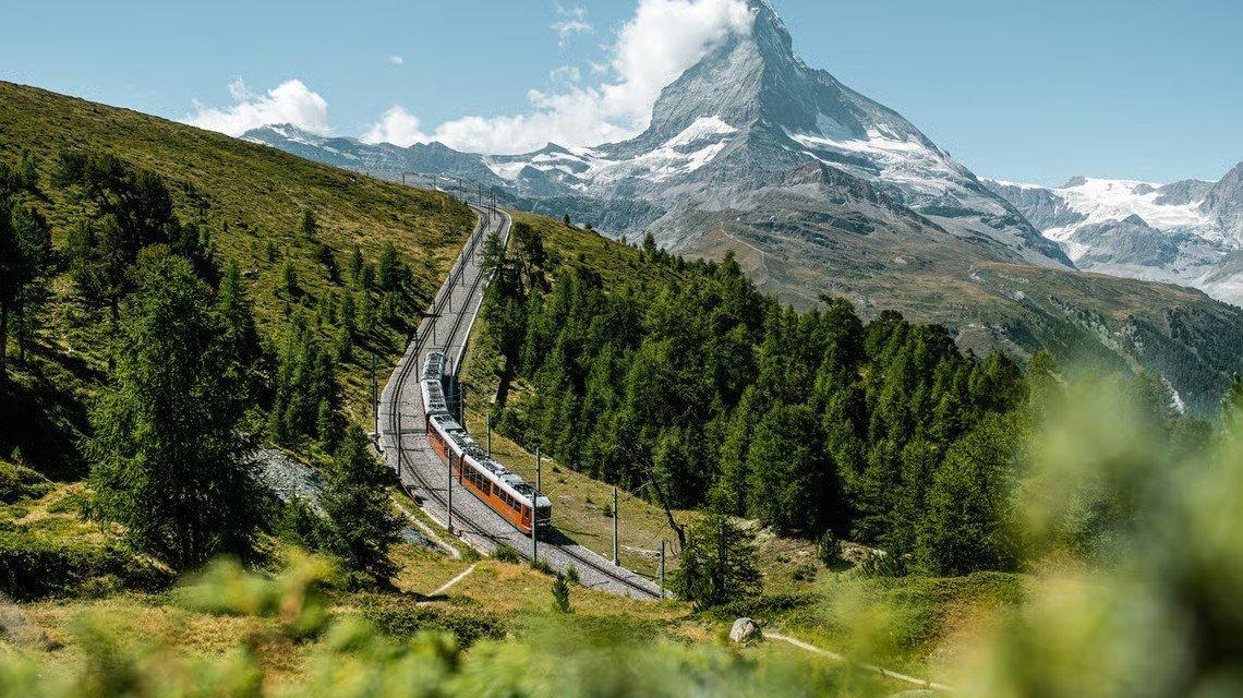 The path mainly leads through a typical mountain forest. In between, the Matterhorn and the green hump of the Schafberg can be seen, where the gondolas of the Matterhorn Express float in the height. Gnarled Swiss stone pines and larches standing straight like candles in the sky emit a pleasant scent in the sun's warmth. When the wind blows, the rustling of Swiss stone pine and larch needles fills the surroundings.