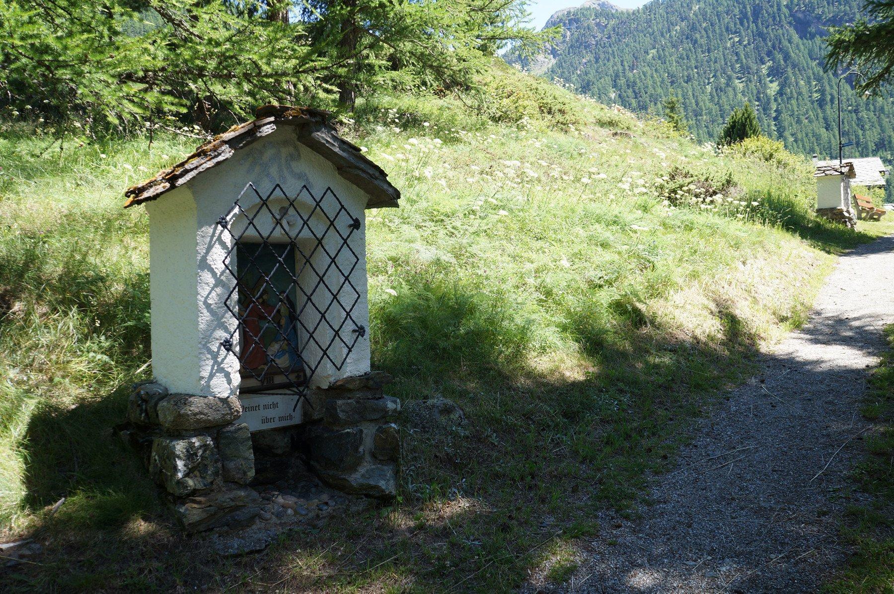 Each individual shrine has a unique, original and highly unusual inscription. They are thought to be the work of the priest Gregor Brantschen (1894–1987), a composer and poet of the region with great sensitivity. The inscription of the XIII station has unfortunately been lost. The Stations of the Cross end at the chapel of Winkelmatten. For a few years now, at the start of Advent, a candlelit procession leads along the Stations of the Cross to Winkelmatten, followed by mass in the chapel.