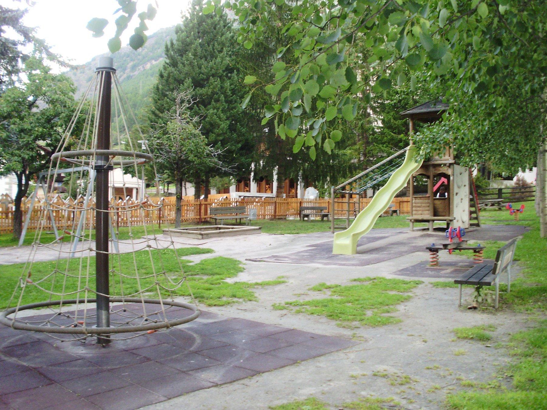The playground is located in the heart of the village of Täsch, by the Catholic church.