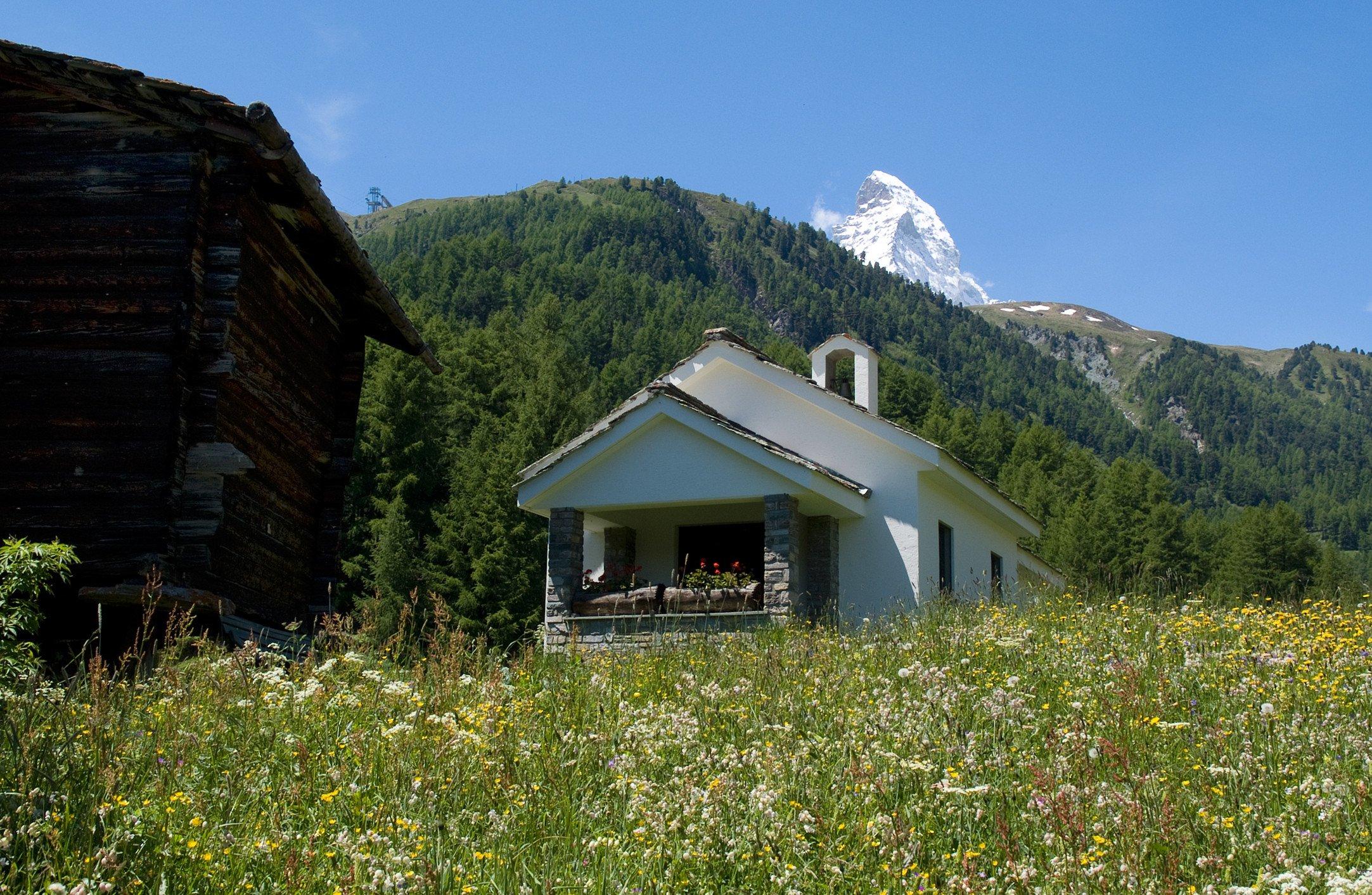 The chapel of Zum See, the newest of Zermatt’s chapels, is dedicated to St Barbara. The small chapel is located by the hamlet of Zum See, whose name means “by the lake” – but there is no lake here, just lush alpine pastures and small patches of forest.