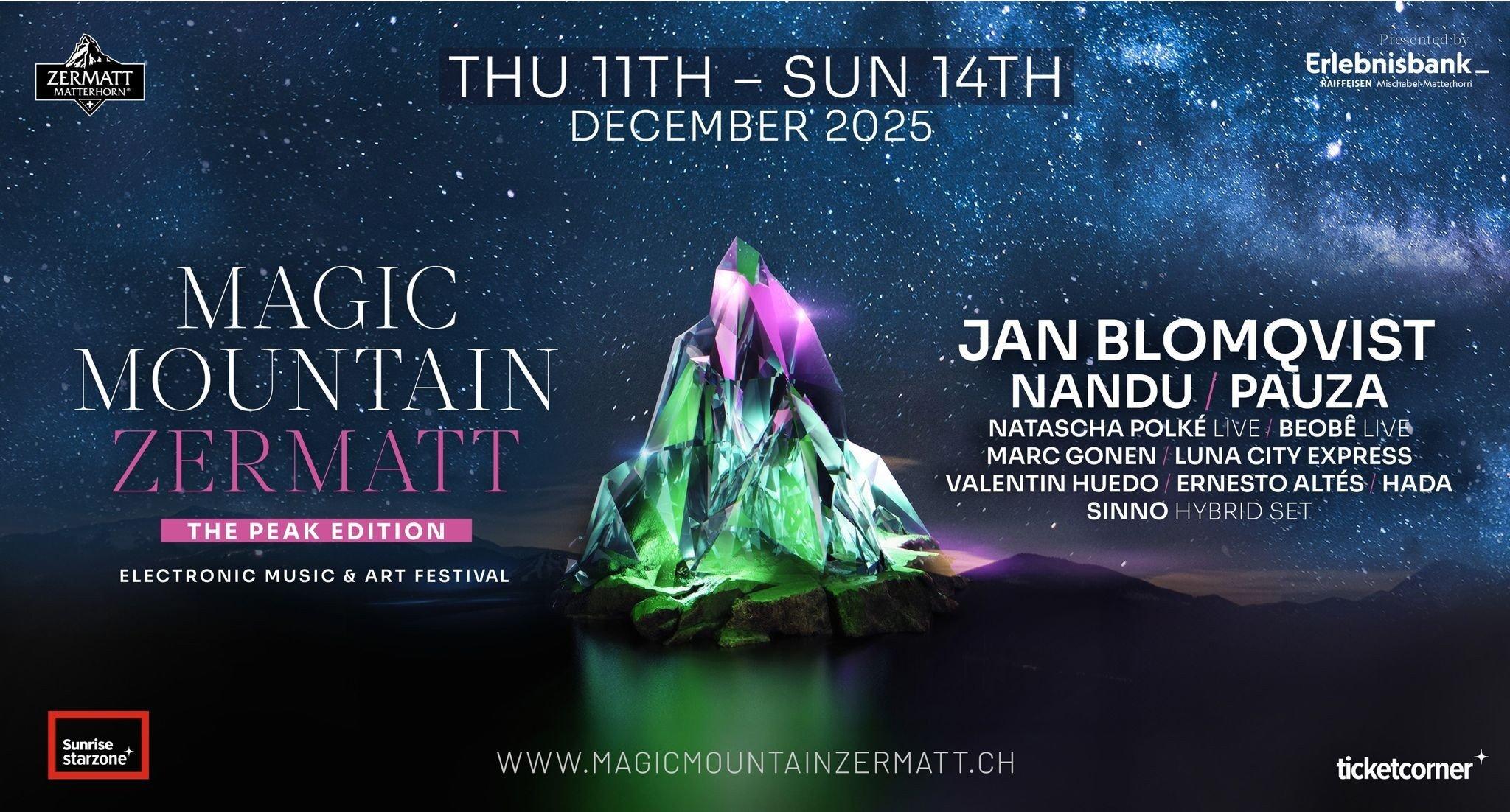 La deuxième vague arrive : après une première édition à guichets fermés, Magic Mountain Zermatt revient – plus fort, plus coloré, plus magique que jamais. Du 11 au 14 décembre 2025, nous danserons à nouveau à 1'600 mètres d’altitude, là où les basses résonnent dans les montagnes et où le ciel se transforme en piste de danse.