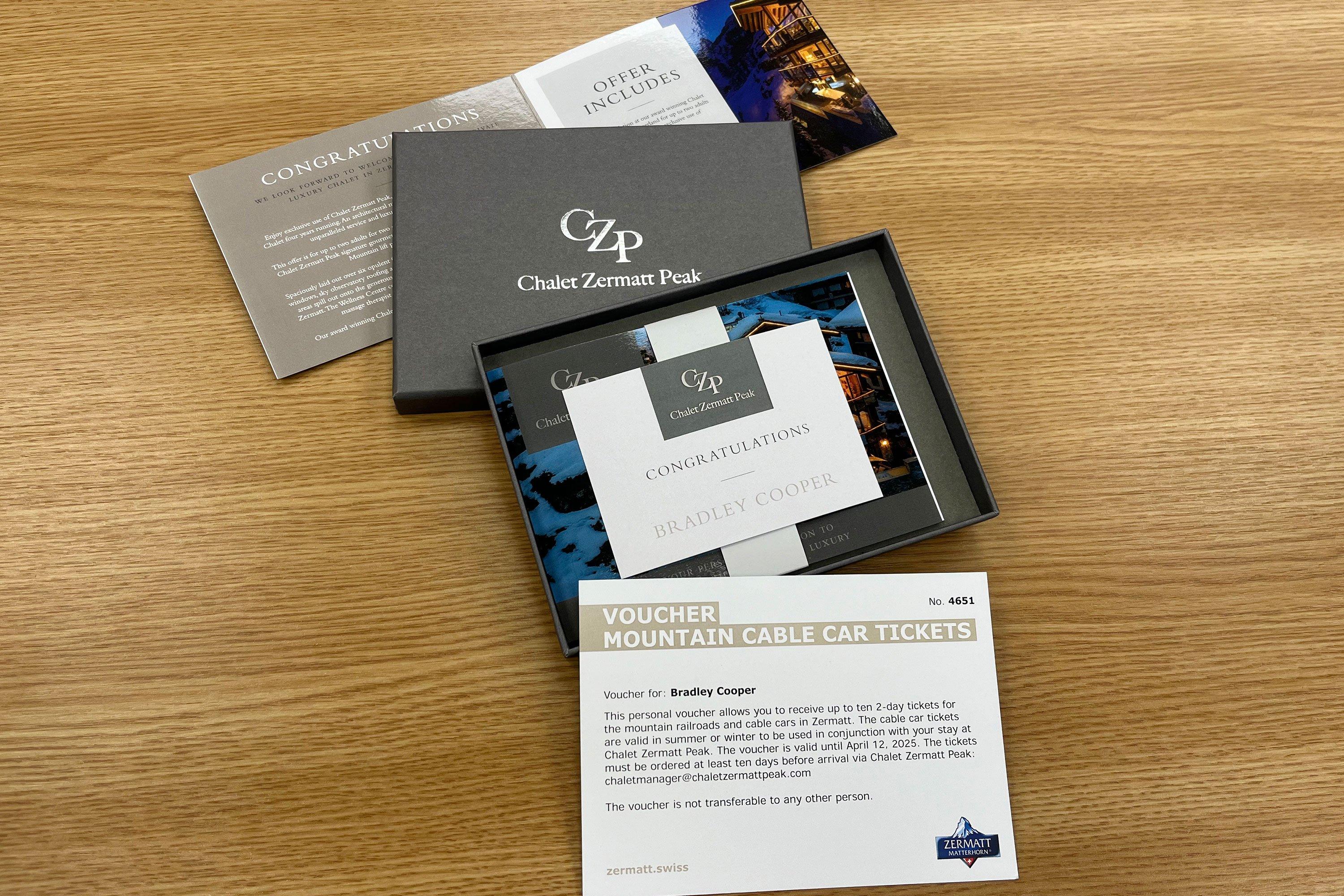 Les 25 meilleurs nommés aux Oscars recevront le sac cadeau «Everyone Wins» (Tout le monde gagne), contenant des cadeaux exceptionnels et exclusifs. Cette année, un séjour de trois jours au «Chalet Zermatt Peak» (CZP), domicile de luxe à Zermatt, fait partie des cadeaux. Le «Chalet Zermatt Peak» a été récompensé il y a peu comme étant le meilleur chalet de ski du monde et se distingue par son architecture, sa situation exceptionnelle, sa cuisine de haut niveau et son service taillé sur mesure.