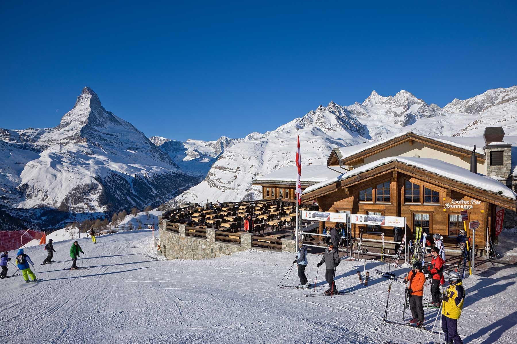 « Sunnegga », ça sonne comme beaucoup de soleil. Ceux qui connaissent déjà un peu le dialecte valaisan s'en doutent, dans ce « coin », les hôtes sont gâtés par le soleil du matin au soir. C'est l'endroit idéal pour déguster des spécialités locales accompagnées d'un verre de vin. Le petit plus sensationnel sur la terrasse spacieuse est la vue directe sur le Cervin. Grâce à sa situation à proximité immédiate de la station de train « Sunnegga Express », le buffet et le bar Sunnegga sont facilement accessibles, même sans ski ou snowboard, simplement à pied.