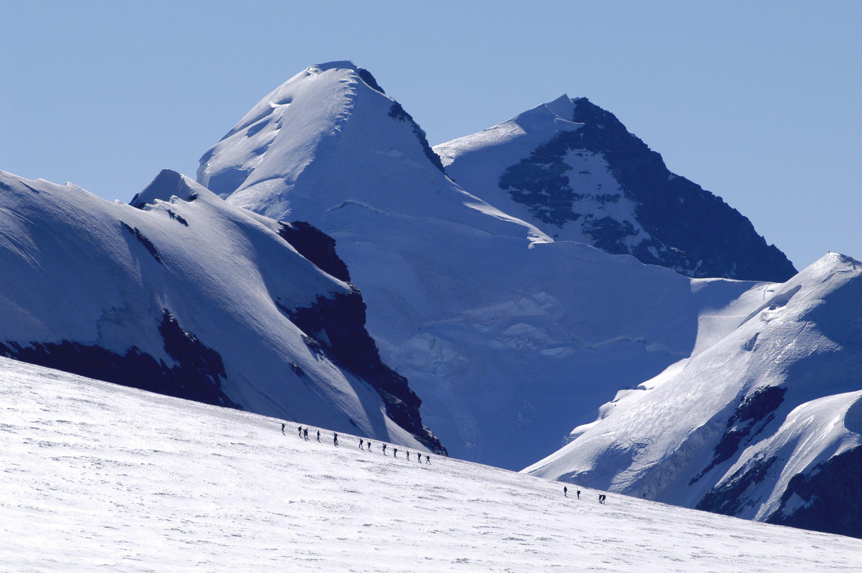 Castor et Pollux, les deux jumeaux de 4’000 mètres, s’alignent dans la chaîne de montagne située entre le Breithorn et le massif du Mont Rose. Le sommet du Castor se situe sur territoire italien.