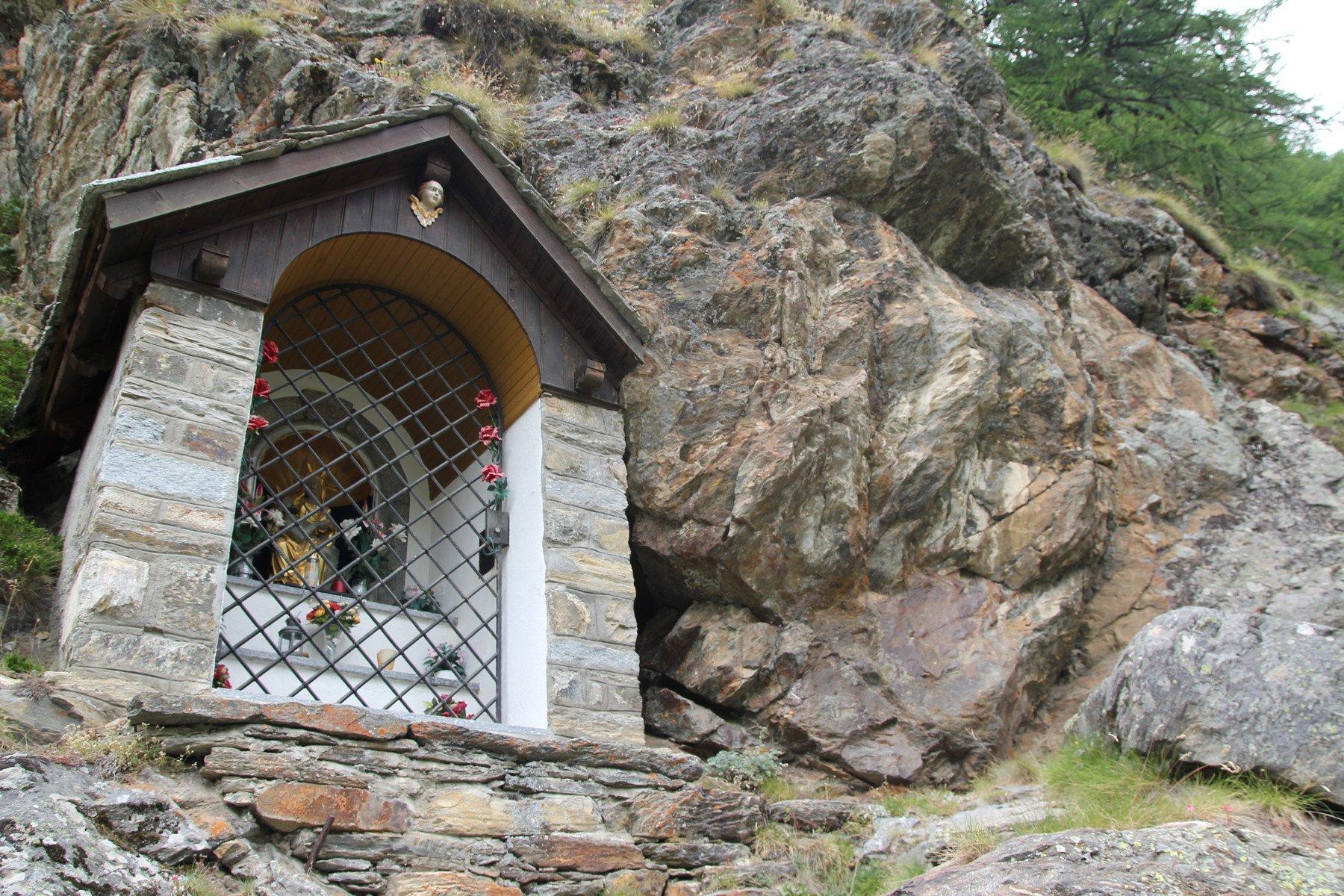 L'été 1937, un chemin de croix jalonné par 14 étapes fut aménagé sur le chemin reliant le pont Fluhbrücke à la chapelle, que l'on doit à Klara Truffer (z' Franz'sch Klari). Elle donna l'impulsion décisive et s'engagea à entretenir le sentier. Les offrandes que déposent aujourd'hui les pèlerins et les randonneurs dans le tronc de la chapelle servent à l'entretien du chemin de croix et de la chapelle. Et ils s'en voient récompensés: le chemin de croix convainc par sa vue imprenable sur les somptueuses montagnes de Zermatt, de Täsch et de Randa, avec les sommets du Dom et du Weisshorn qui se détachent.