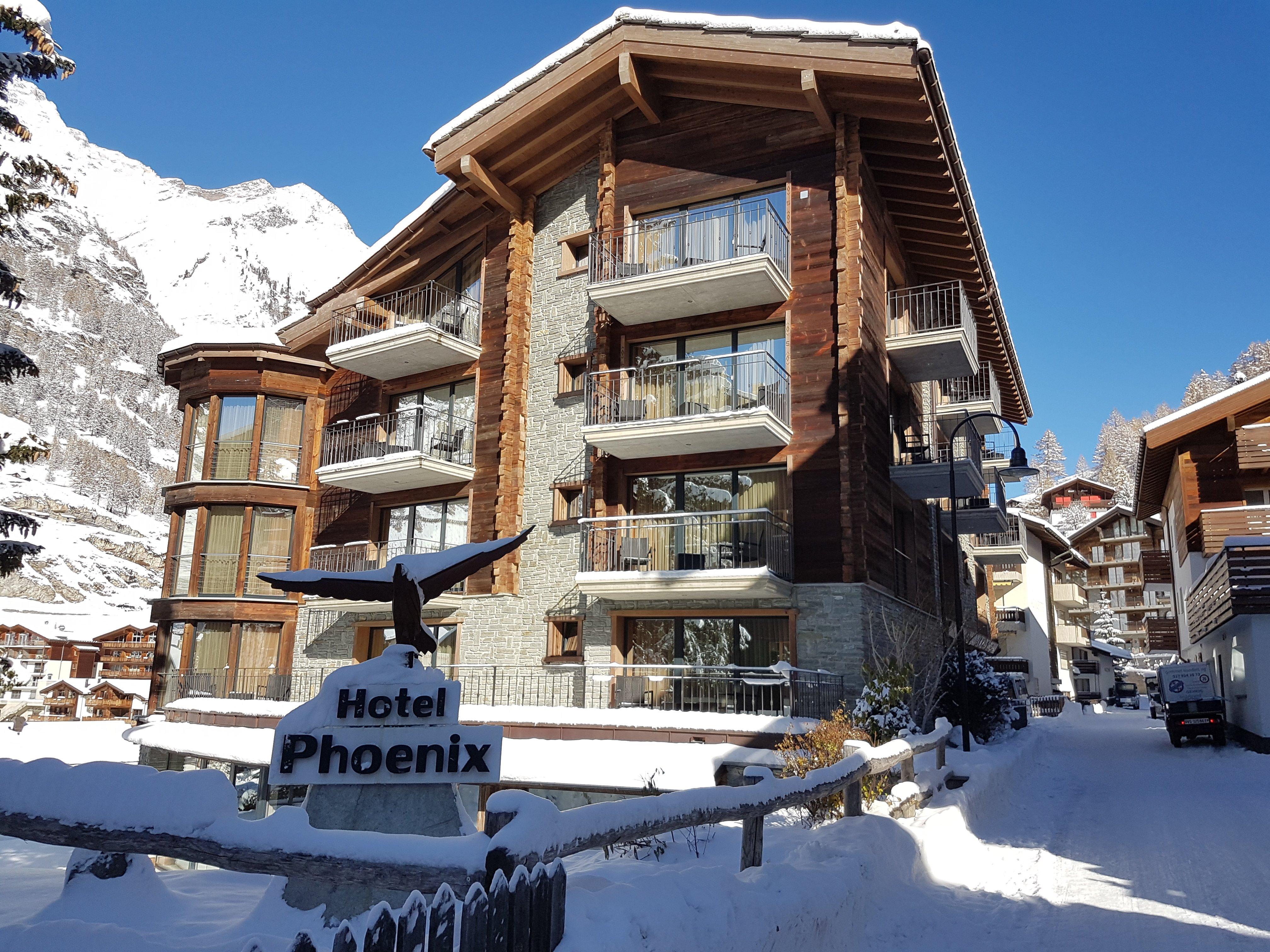 99% de taux de recommandation. Le design fonctionnel en vieux bois, en pierre de taille et en verre fait du Phoenix un lieu intime pour votre séjour à Zermatt. Le téléphérique Sunnegga/Rothorn et le bus Matterhorn Glacier Paradise sont accessibles en 2 minutes à pied. La maison récemment construite dispose de 27 chambres doubles, dont les chambres doubles avec baie vitrée et vue magnifique sur le Cervin sont certainement un point fort. Accès Wifi gratuit dans toute la maison. Le centre de fitness de la maison, d'une superficie de 200 m2, permet de se défouler même par mauvais temps. Dans la tendance du développement durable, nous misons entièrement sur la géothermie dans notre établissement.