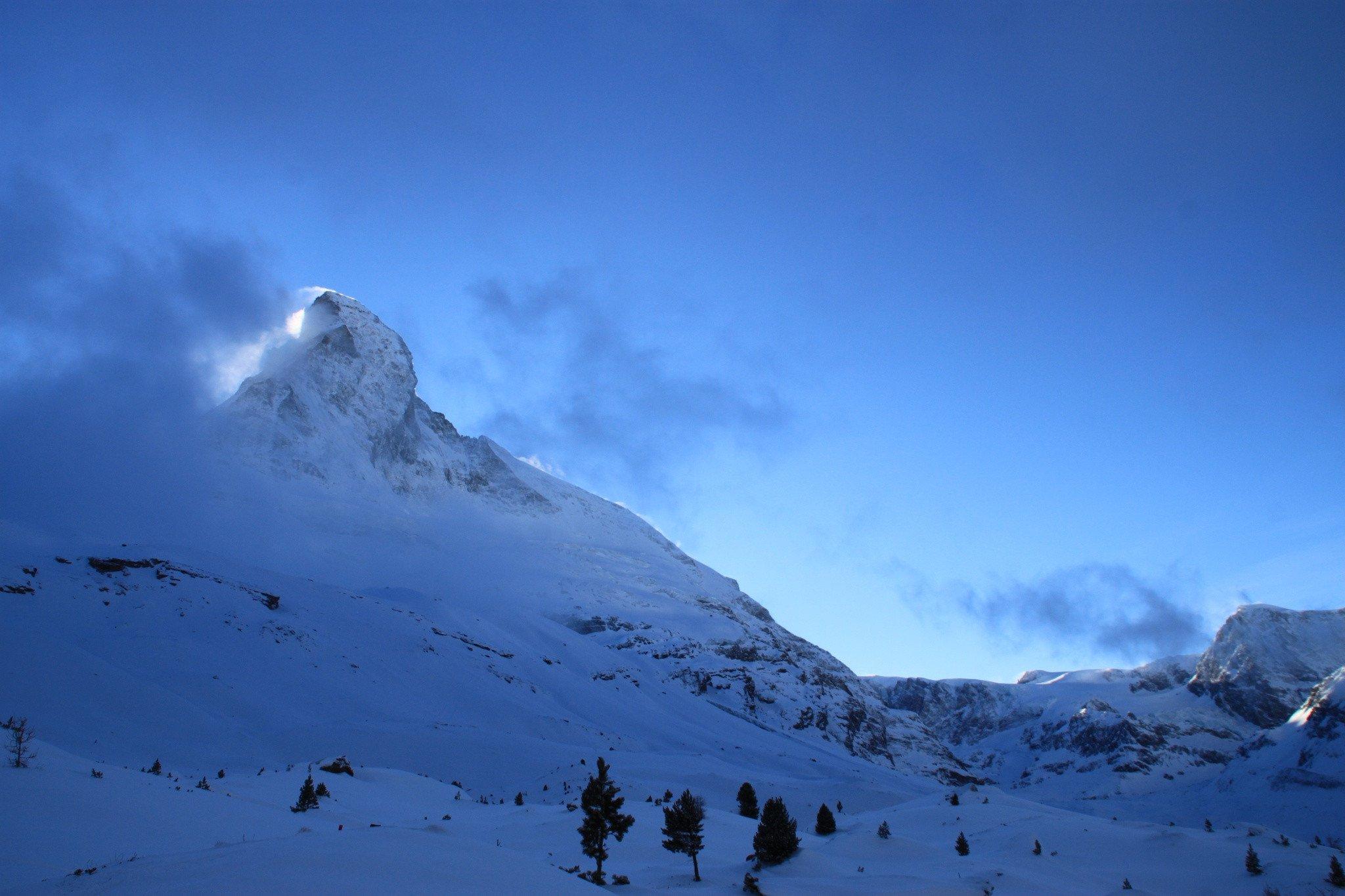 On n'est jamais aussi proche du Matterhorn sur un autre parcours d'hiver. La randonnée mène de Schwarzsee à Stafel, avec une descente de 380 mètres de dénivelé. Toujours à côté : la face nord du Matterhorn. Elle représente encore aujourd'hui un grand défi pour les alpinistes, que seuls quelques très expérimentés affrontent.