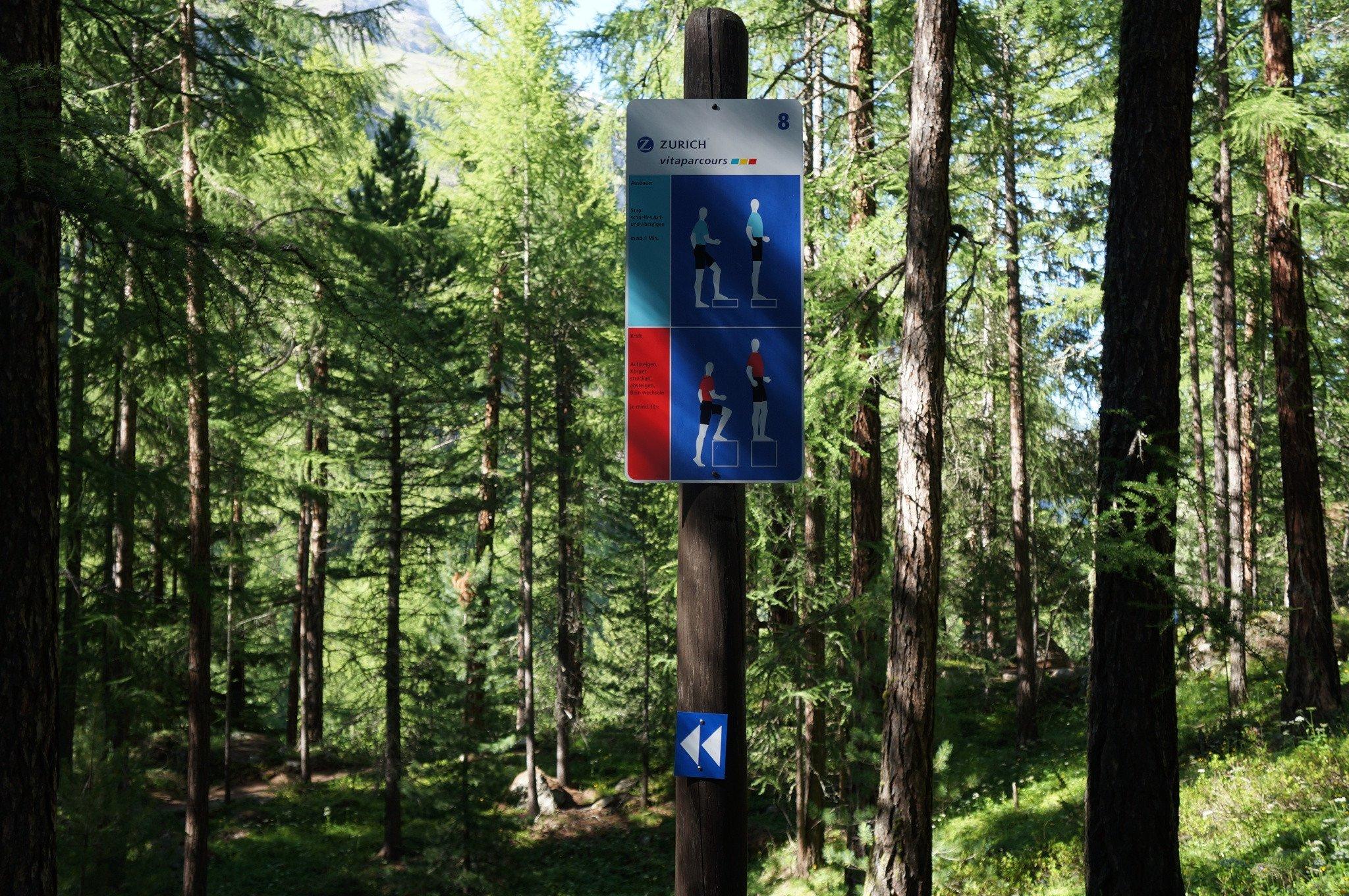 Le vitaparcours de Zermatt – c'est le parcours de jogging et gymnastique au pied du Cervin. Dans la forêt verte entre le Zmuttbach et Furi, on fait des exercices physiques. Le parcours est varié, les stations d'exercice se trouvent aux endroits les plus beaux, en plein milieu de la forêt mixte de montagne. Le chemin passe sur des rochers et racines, autour de blocs de pierre, sur un sol moelleux de aiguilles de mélèze et jusqu'au hameau de Blatten.