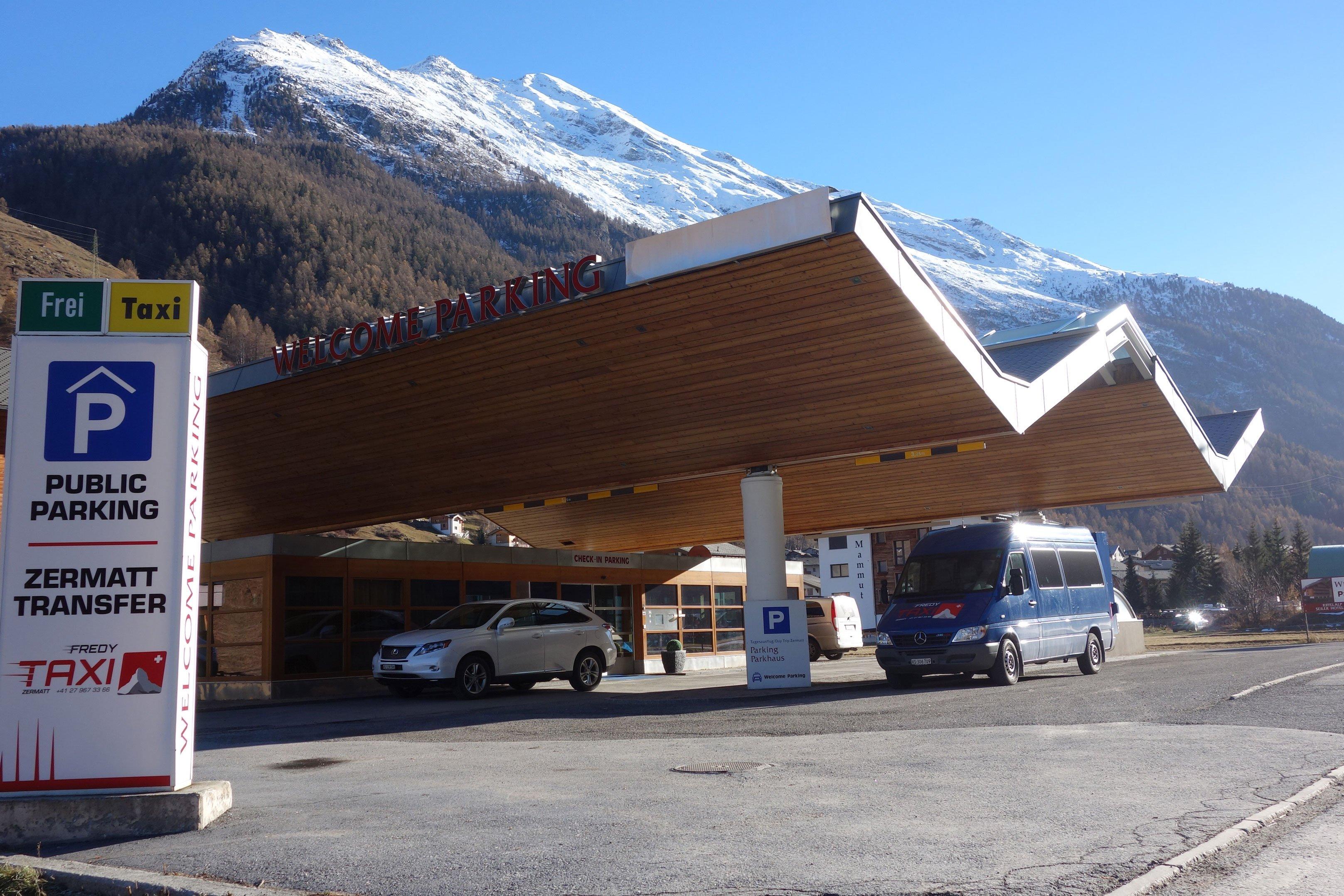 Bienvenue au Welcome Parking de Täsch. C’est ici que les vacances commencent! Le parking moderne de plusieurs étages à Täsch avec plus de 120 places de stationnement couvertes. Ses employés prennent volontiers en charge les visiteurs et leur voiture, et les emmènent jusqu’à l’entrée de Zermatt. Une station de chargement originale Tesla est disponible gratuitement. Le transfert jusqu’à l’hébergement y est également organisé. Le Welcome Parking de Täsch est accessible 24 heures sur 24! Il te propose à présent aussi un spa pour ta voiture: moyennant un supplément, l’atelier de carrosserie du parking se chargera d’effectuer le nettoyage intérieur et extérieur ainsi que des travaux de réparation et de polissage sur ton véhicule.