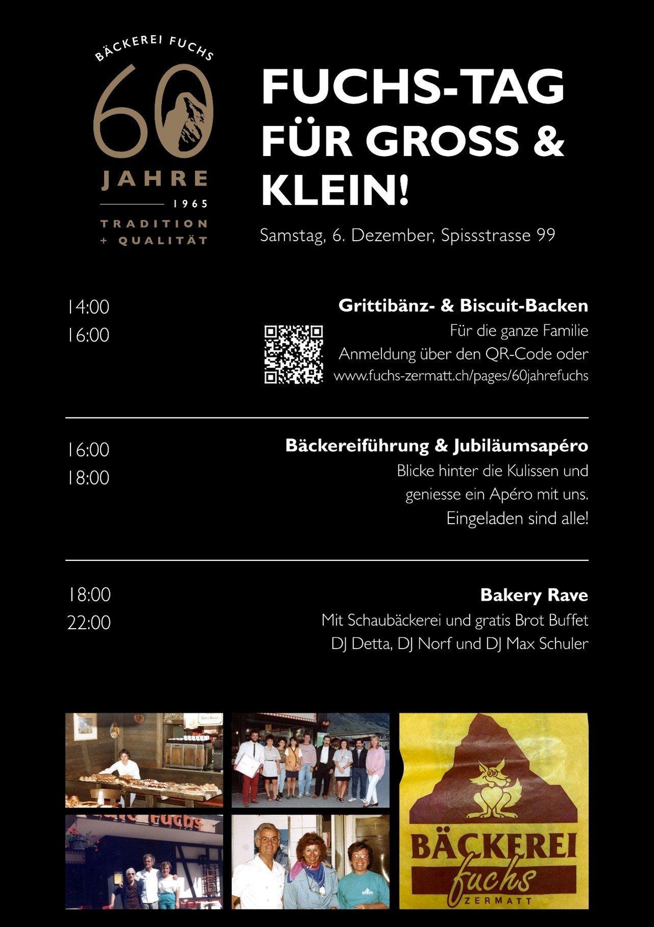 Der wichtigste Punkt: Um 16:00 Uhr laden wir dich und deine Liebsten herzlich zum Jubiläumsapéro ein! Schau bei einer Bäckereiführung hinter die Kulissen und geniesse mit uns den Feierabend. Alle sind eingeladen!