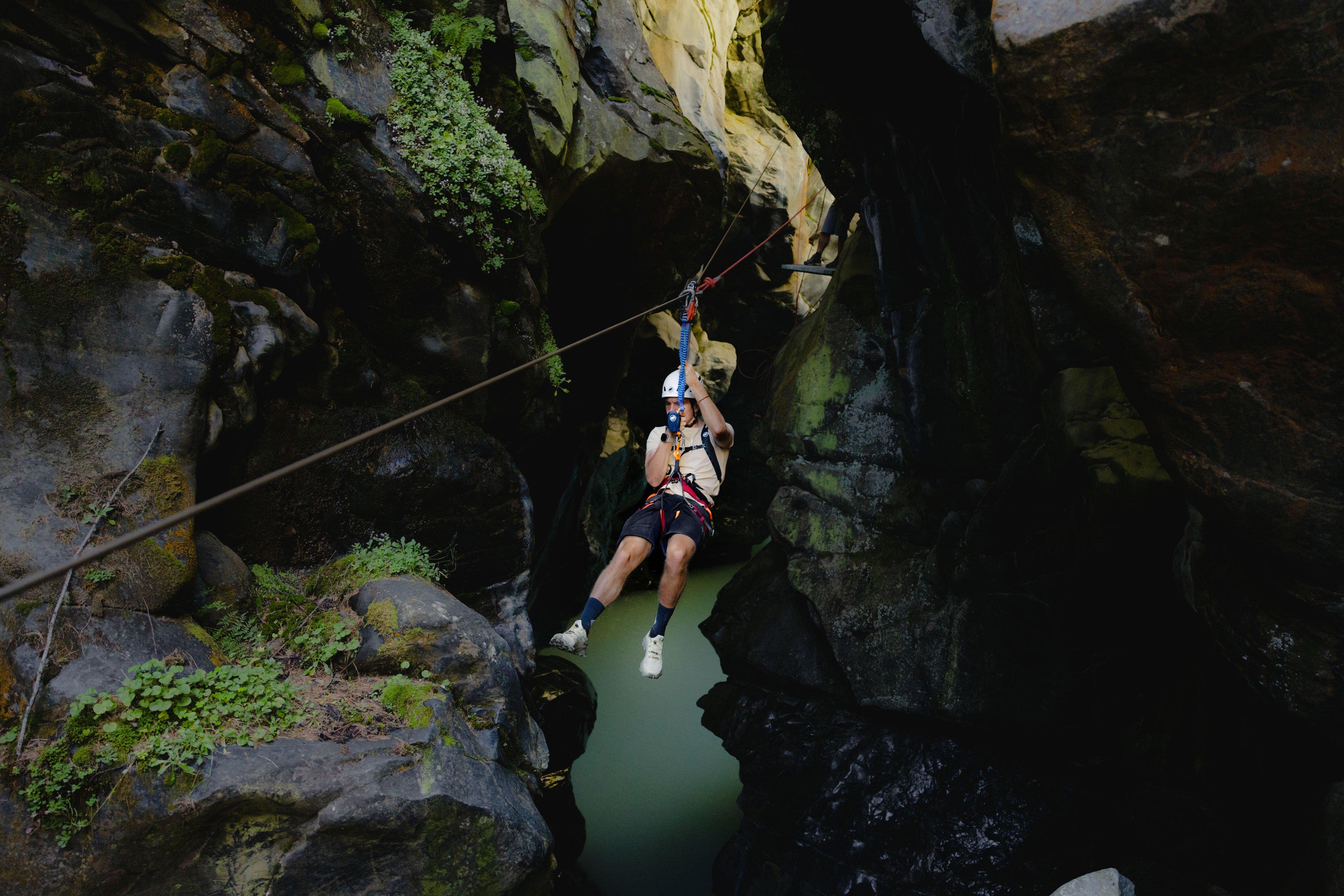 Die Schlucht wird auf einer Länge von ca. 1 km abwärts in ca. 3 bis 4 Stunden durchquert. Höhepunkte der Durchquerung sind drei Abseilstellen, drei Seilbahnen, ein Pendel und Himalayabrücken. Während des Parcours ist man durchgehend gesichert und gelangt trockenen Fusses ans Ziel, nahe des Bergrestaurants Blatten.