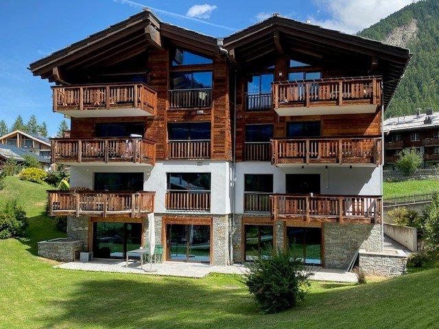 Das Haus Omega wurde im Jahr 2012 im typischen Zermatter Stil mit Altholz und Granitstein erbaut. Es befindet sich in der Nähe von Winkelmatten in einer ruhigen Umgebung. Von der Wohnung aus ist eine unverbaute Aussicht auf das Matterhorn möglich. Vor dem Haus liegt eine große Wiese, die im Winter per Ski zur Skipiste führt und im Sommer zu den Wanderwegen. Das Mehrfamilienhaus verfügt über eine moderne Wellness-Oase mit Whirlpool, Sauna und Dampfpfad.