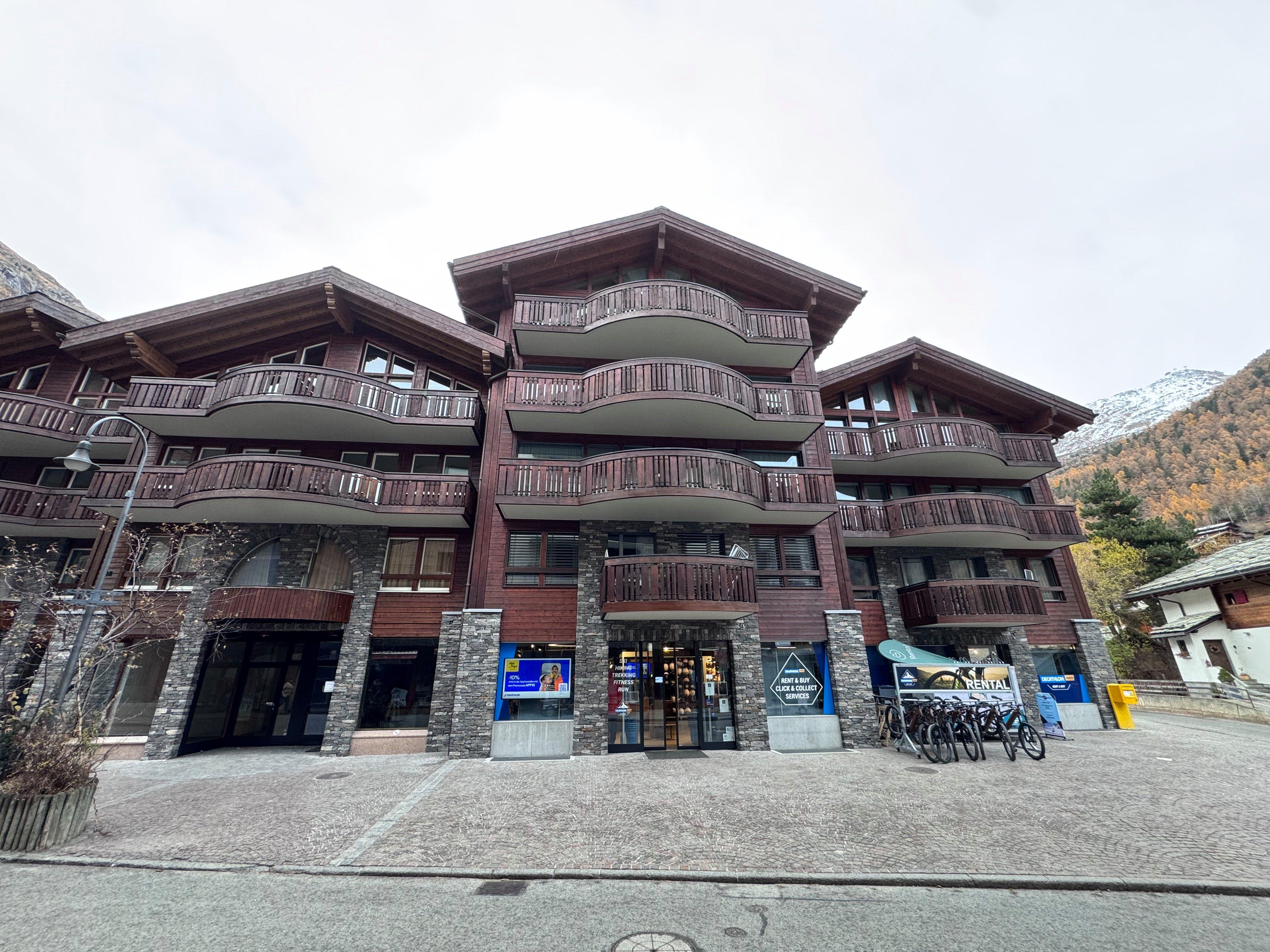 Die Bahnhofstrasse mit ausgezeichneten Restaurants, Cafés und Geschäften liegt nur 50 Meter entfernt und im Gebäude haben wir einen Sportshop, wo Sie Ski oder Bikes ausleihen können.