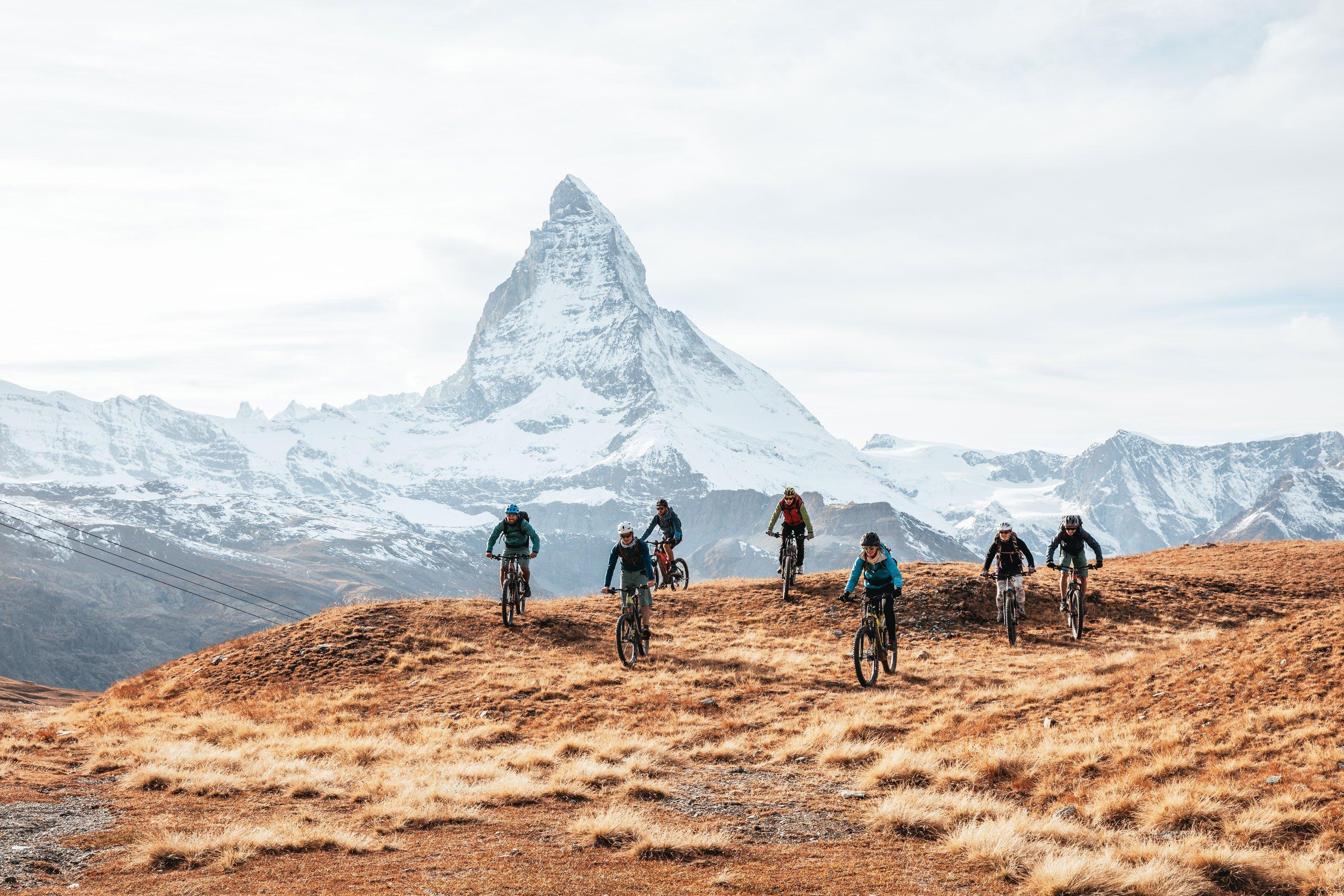 Der letzte Tag des e-MTB beginnt mit einem herrlichen Trail mit Panoramablick auf die Gipfel des Zermatter Tals. Ein hügeliger Singletrail führt uns zurück ins Tal.