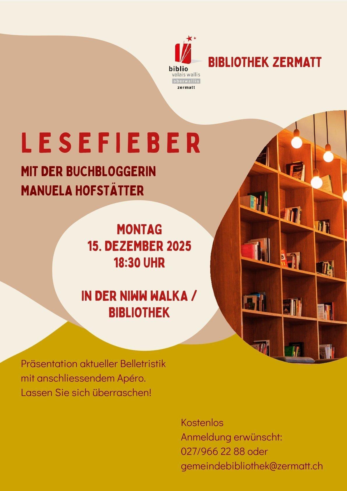Lassen Sie sich vom Fieber anstecken! Manuela Hofstätter, Buchhändlerin und Pionierin des Schweizer Buchblogs verbreitet »Lesefieber«. Sie stellt neue Belletristik für jeden Geschmack vor. Lassen Sie sich von ihrer Show überraschen! Für alle Bücherfans ein unvergesslicher Abend.