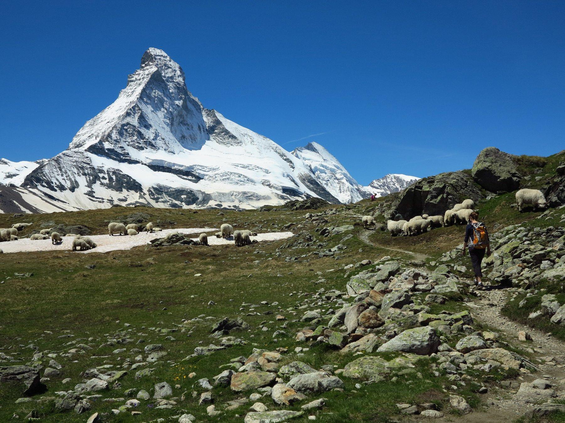 Diese Aussicht muss erarbeitet sein, denn keine Bergbahn führt hinauf. Der Aussichtspunkt auf 2'665 m zeigt ein atemberaubendes Panorama: Matterhorn mit Nordwand, Hörnligrat sowie viele weitere der über 4'000 m hohen Bergriesen.