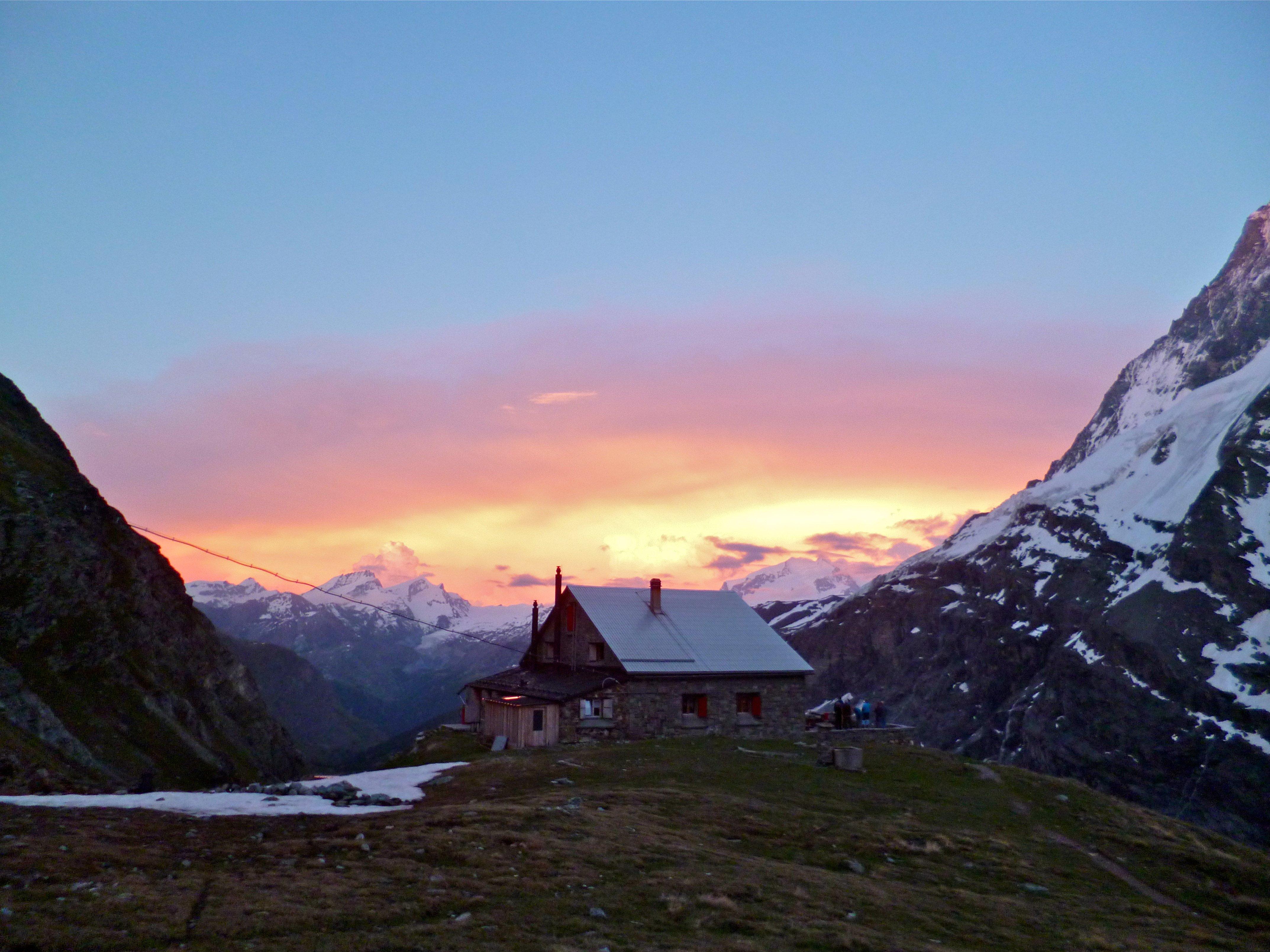 Herzlich Willkommen in der Schönbielhütte. Umgeben von mächtigen 4000ern wie Matterhorn, Dent Blanche, Dent d'Hérens oder Obergabelhorn ist die Hütte Ausgangspunkt atemberaubender und klassischer hochalpiner Touren wie der Haute Route oder der Tour du Ciel. Als Wanderziel am Ende des friedlichen Zmutttales gelegen, erreichen Sie uns - ohne Steigeisen - in 2,5 Stunden (von Schwarzsee) oder zu Fuss von Zermatt in nur 4 Stunden in einer unvergesslichen Wanderung entlang der Matterhorn-Nordwand. Die Hütte liegt im Grünen auf einem "schönen Bielti" und bietet sich auch für Familien als wunderbares Ausflugsziel an.