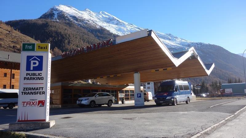 Modernes Parkhaus in Täsch mit über 120 gedeckten Parkplätzen. Die Mitarbeiter kümmern sich gerne um Gäste und ihren Wagen und bringen Gäste bis zum Ortseingang von Zermatt. E-Autos können für sFr. 20.00 aufgeladen werden. Auch die Weiterfahrt zur Unterkunft wird organisiert. Das Welcome Parking Täsch ist rund um die Uhr erreichbar! Es bietet neu Wellness fürs Auto: Innen- und Aussenreinigungen sowie Reparaturen und Polieren können gegen einen Aufpreis in der hauseigenen Carrosserie erledigt werden.