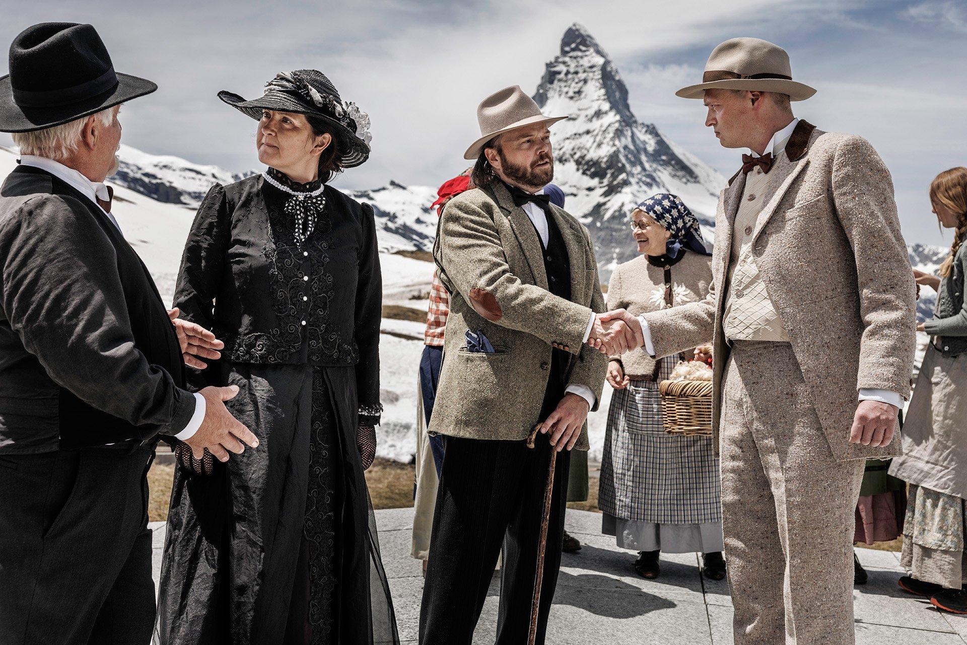 Während des Probebesuchs lässt sich dies eindrücklich beobachten. Man wähnt sich 160 Jahre ins Jahr 1865 zurückversetzt. Die Kostüme, die Interpretation der Rollen, die passende Musik. Das Gezeigte kommt einer in sich stimmigen Hommage an die Ursprünge des Alpinismus und schliesslich Tourismus in Zermatt gleich. Immer wieder unterbricht Livia Anne Richard, korrigiert, gibt Anweisungen und «wendet den kleinen Pinsel» an, wie sie es nennt, um an den finalen Details zu arbeiten.